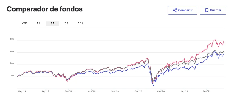 Puedes comparar estos o cualquier otro fondo en nuestro comparador de fondos de inversión. Por ejemplo, aquí la comparativa de los 3 comentados más arriba.
