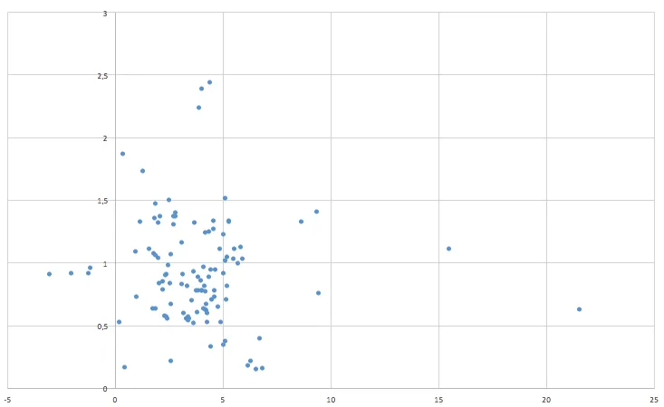 En este gráfico cada puntito representa la relación entre la comisión y la rentabilidad de cada uno de los fondos de la categoría a 3 años. Como se puede ver, apenas una decena de los fondos cotizan en niveles inferiores al 0,5%, que es donde suelen estar la mayoría de los fondos de gestión pasiva en otros mercados.