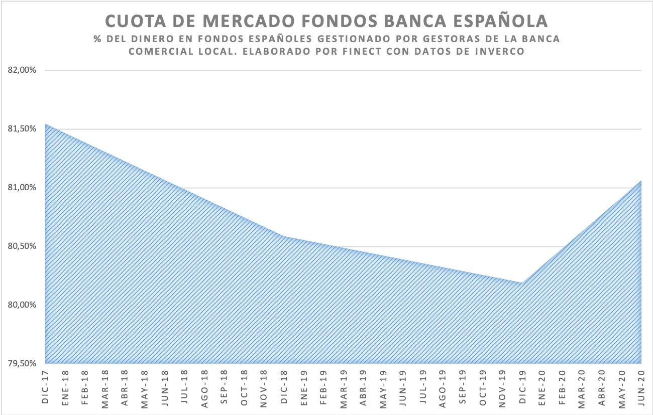 En lo que va de año, de hecho, la cuota de mercado de las grandes gestoras bancarias incluso está subiendo, ya que terminó 2019 en niveles cercanos al 80%. La facilidad de la gran entidad tradicional en lanzar nuevos productos defensivos en un entorno tan complicado como el actual, junto con los flojos rendimientos en los fondos estrella de las principales gestoras independientes explican este aumento de los bancos en la tarta de la inversión en fondos locales.