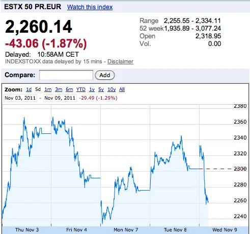 Impresionante cómo se ha disparado la prima de riesgo de Italia, ante todas las incertidumbres que se están generando en torno a la dimisión de Berslusconi y los planes de ajuste.