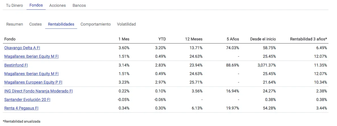 También podemos encontrar en la home un nuevo área con los fondos españoles más rentables a 3 años así como otro espacio con algunos de los grupos más destacados.