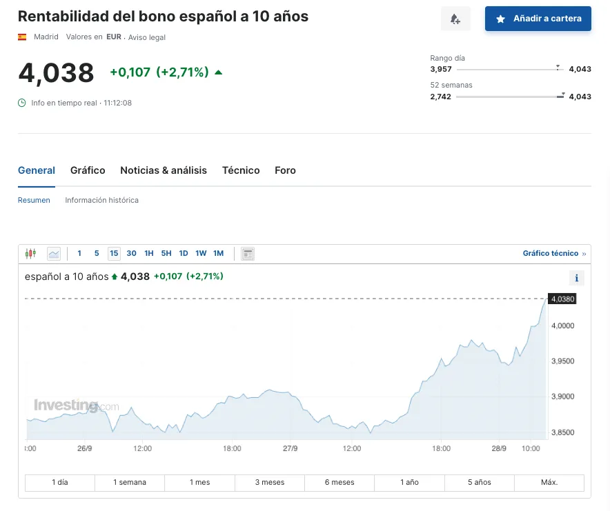 En España, el bono a 10 años ha tocado ya el 4%.