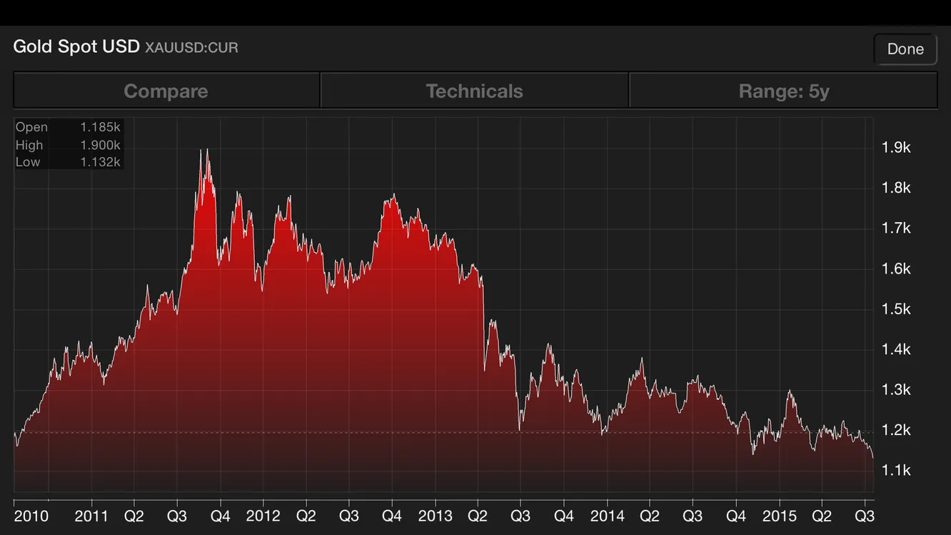 Anda marcando hoy el oro mínimos desde hace muuuucho tiempo. En la apertura se ha ido hasta casi los 1.100 dólares por onza.