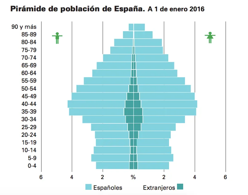 Somos la parte más gorda de la pirámide poblacional y por debajo la cifra de personas (y de potenciales trabajadores) se va reduciendo a marchas forzadas. Cuando pretendamos jubilarnos, será el momento en que la relación entre el número de personas trabajando y los pensionistas sea más alto. Es decir, el punto de nuestra historia en el que habrá menos que repartir entre más personas.