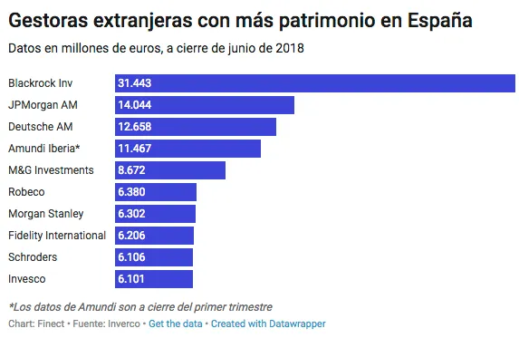 Ranking de gestoras extranjeras por patrimonio gestionado en España