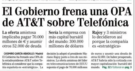 Una pregunta... ¿Telefónica era una compañía privada, no? ¿Pueden los gobiernos impedir que se lancen opas sobre compañías privadas? Qué cosas :)