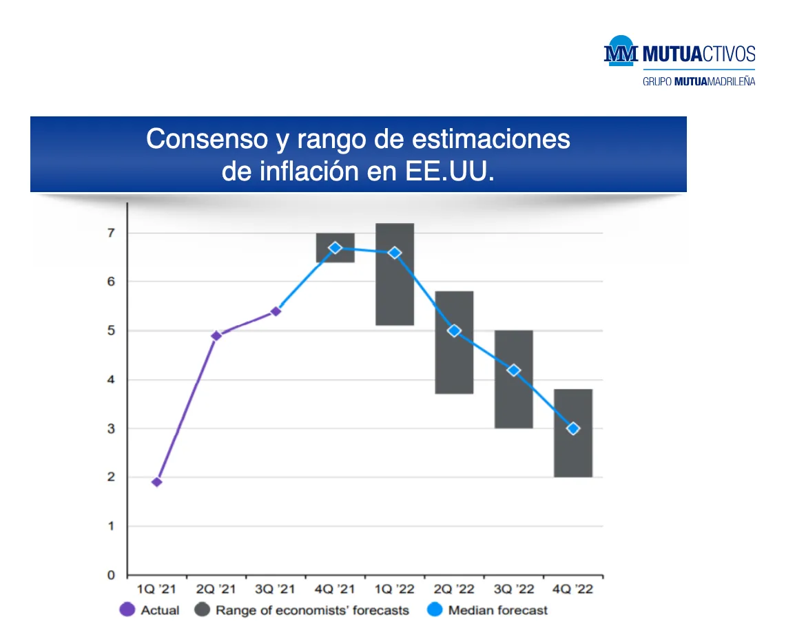 "La renta variable es el único activo en el que vamos a poder batir la inflación a medio y largo plazo, pero estamos neutrales ahora mismo" respecto al peso del activo en las carteras. ¿Cuál es el razonamiento detrás de esta estrategia? Que "en terminos absolutos e historicos cotiza a múltiplos elevados, pero en relativo pensamos que sigue siendo muy atractiva", decía Dolz de Espejo.
