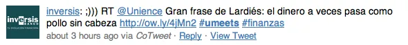 Ahí va un resumen en tweets de cómo ha sido el Unience & Meets que hoy hemos celebrado con Gonzalo Lardiés y con Juan Ignacio Crespo, y con el patrocinio de BNP Paribas y Cortal Consors.