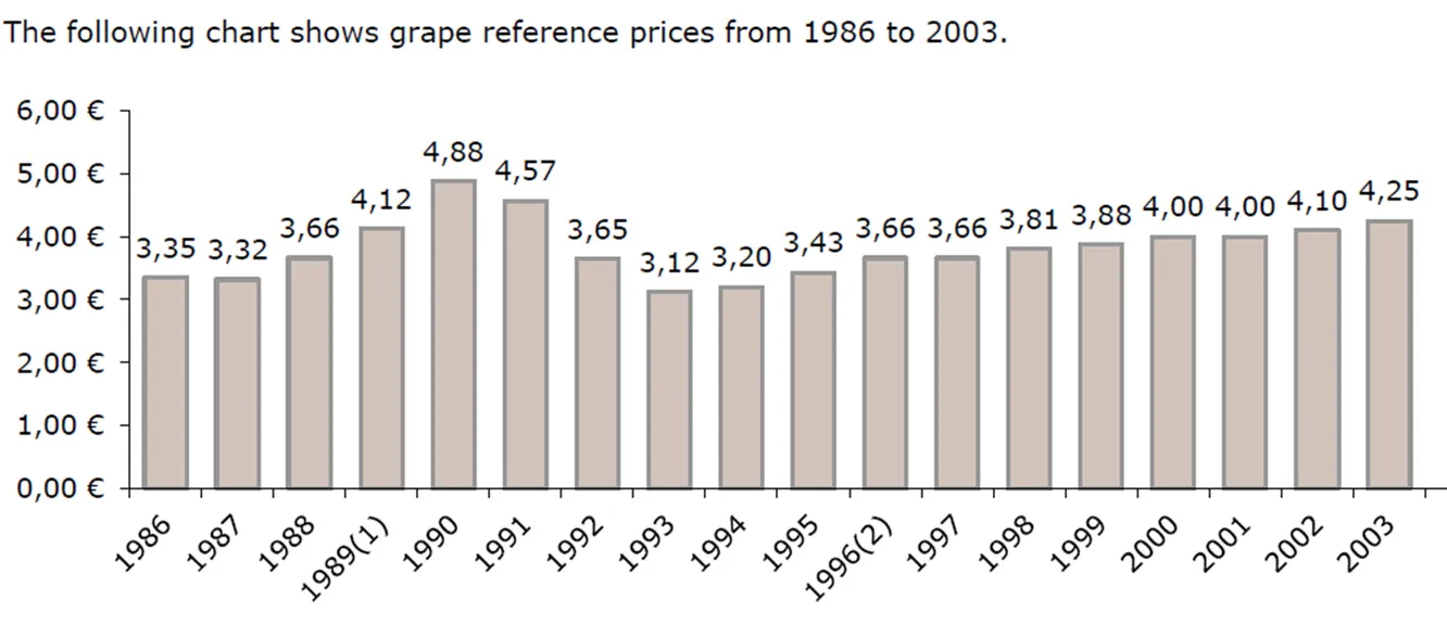 En el siguiente gráfico se muestra la evolución del precio del kilo de uva en Champagne: