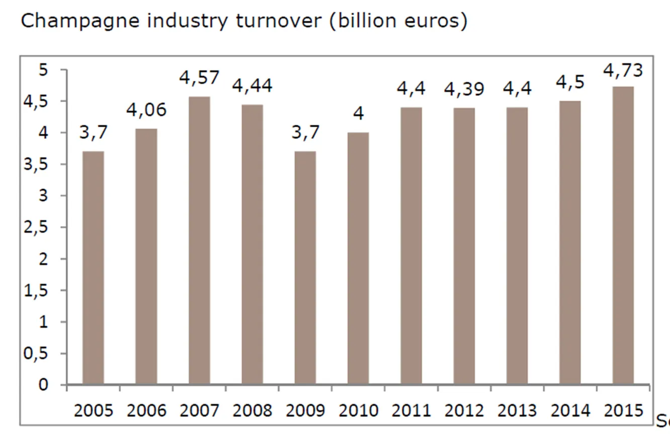 champagne es mayor a la de los espumosos ingleses e italianos, pero