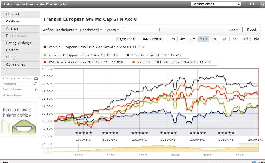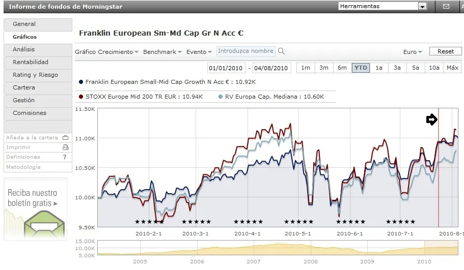 Hace un par de meses detecté una pestaña de gráficos dinámicos en la ficha de los fondos. Hasta hace poco estaba en beta, pero ahora parece estar en su versión estándar. Puede que ya lo halláis visto antes ...
