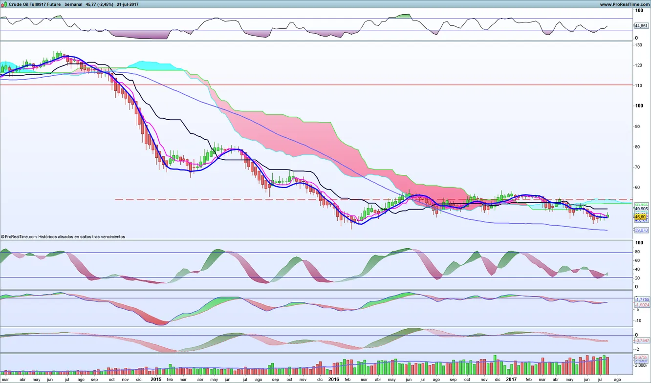 Parece que el primer soporte que indicábamos, esto es, en los máximos de abril del 2015, que tanto costo superar y donde hay un fuerte soporte no ha aguantado, aunque no está roto del todo.