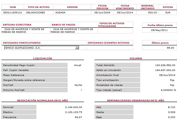 bonificadas de Audasa o Avasa, que cotizan en el mercado AIAF