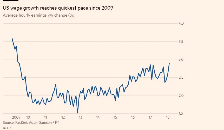 Qué ha pasado? Buenas noticias que han cotizado como malas. Buena noticia en el empleo de US que mantiene la tasa más baja de desempleo de los últimos 17 años y no es mala noticia el repunte de los salarios, el mayor desde 2009.