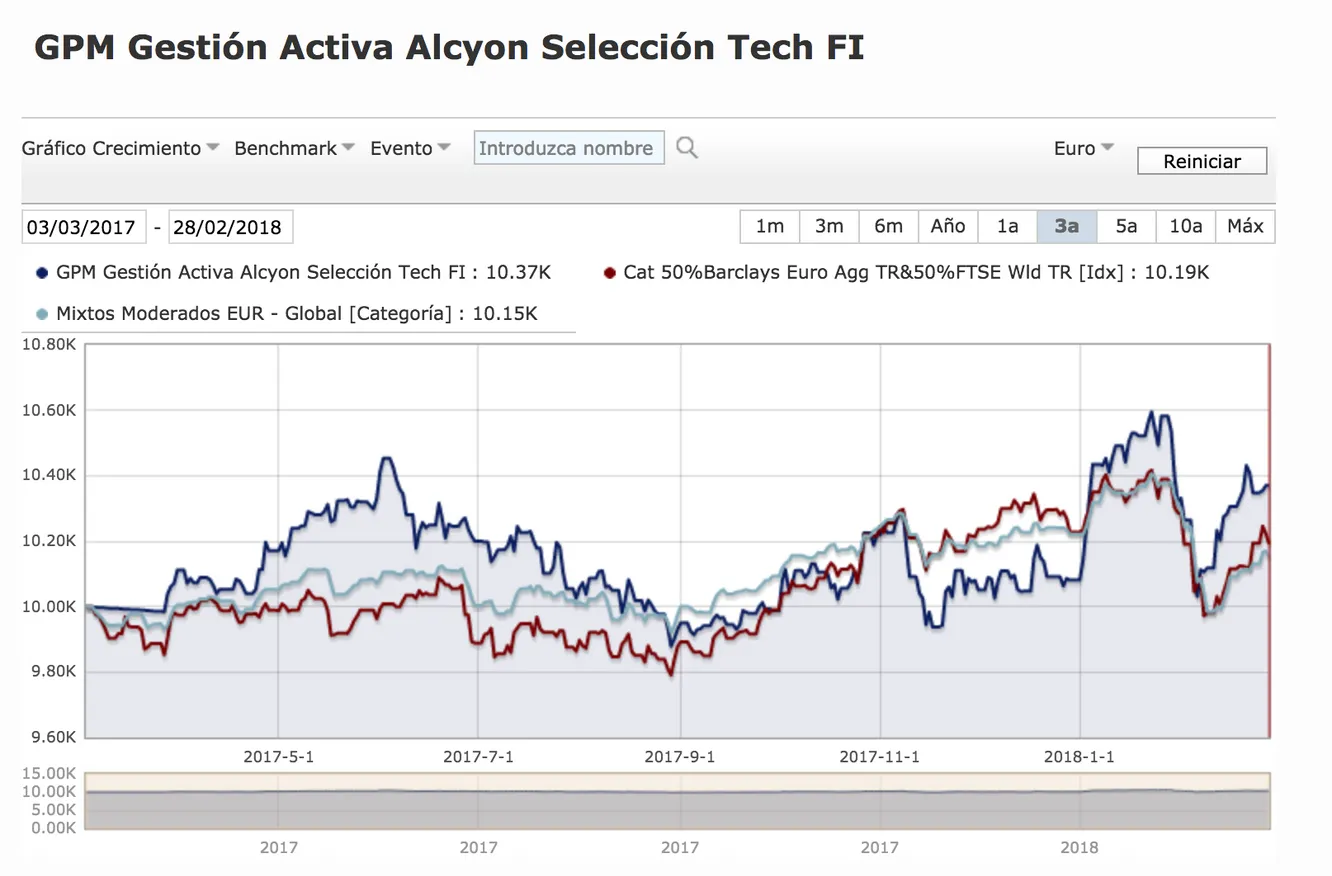 Ayer publicamos la carta a los partícipes del mes de febrero sobre la evolución del fondo GPM Alcyon que gestiono. Durante este mes el fondo subió un 0,52% que le hace acumular un 2,96% en lo que va de año 2018 y lo sitúa como primero del año en su categoría de fondos de inversión mixtos moderados globales en euros.Os dejo el enlace al PDF del informe completo del mes en el que comentamos las principales estrategias implementadas en el mes de febrero, la filosofía de inversión del fondo y las estrategias contempladas para este mes de marzo.
