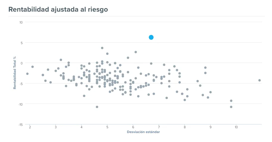 Imagen de la rentabilidad riesgo del fondo GPM Alcyon en comparación con su categoría en el último año (fuente Citywire)