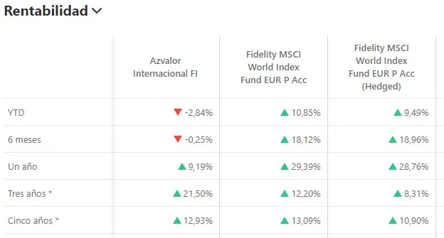 - Si quieres seguir al mercado sin complicarte el Fidelity MSCI World es tu respuesta, pero si quieres huir de las altas valoraciones y el consenso, Azvalor puede encajarte por su capacidad para diferenciar del mercado.