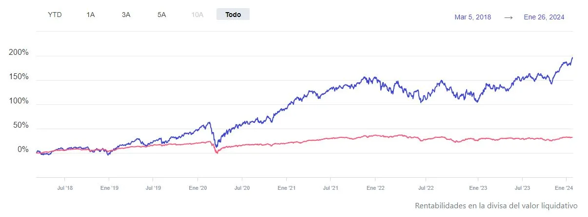 Estamos ante dos fondos muy buscados y que son dos alternativas bastante diferentes para invertir nuestro patrimonio a largo plazo. Y de ahí lo relevante de esta comparativa, ya que cuando invertimos a largo plazo debemos tener claros los pros y los contras de todas las alternativas, sin pensar únicamente en el resultado a corto plazo en términos de rentabilidad y/o riesgo.