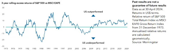 "Aunque en cada una de esas décadas hubo un mercado o una región que destacó, no fue un camino de rosas", señala el gestor. "La renta variable japonesa experimentó una enorme burbuja a finales de los 80; los mercados emergentes sufrieron una crisis bancaria en los 90 y todo el mundo se vio afectado por la gran crisis financiera de los 2000".
