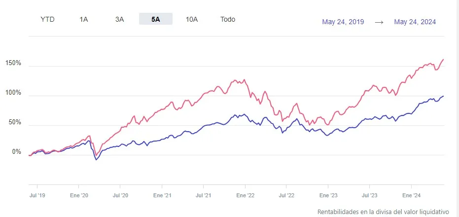 Ambos fondos tienen un histórico de más de 10 años, lo que nos permite analizar su rendimiento a largo plazo. Primero, veamos la rentabilidad en diferentes plazos temporales.