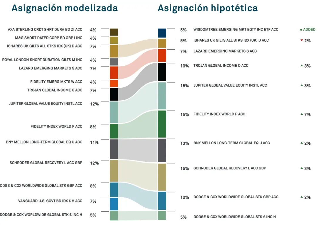 - Análisis de asignación de activos: tanto a nivel total como específico de clases de activos, proporcionando una visión de cómo se distribuyen las inversiones.