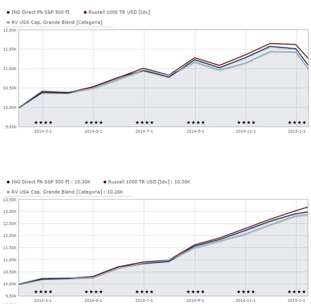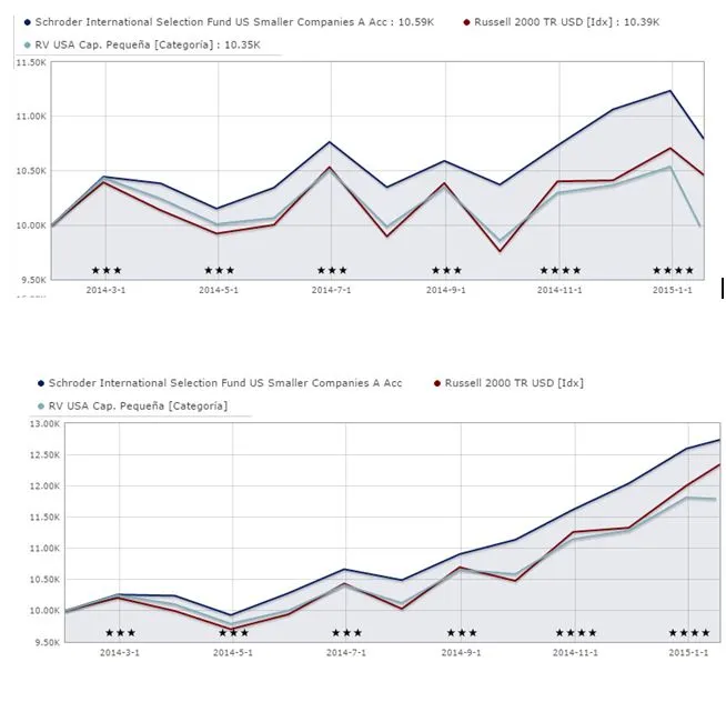 Schroder ISF US Smaller Comp. En Euros está en máximos (mientras que el fondo está negativo YTD en 2015 en dólares), y lo que llamo la atención es sobre la volatilidad. En euros, es casi una línea recta.