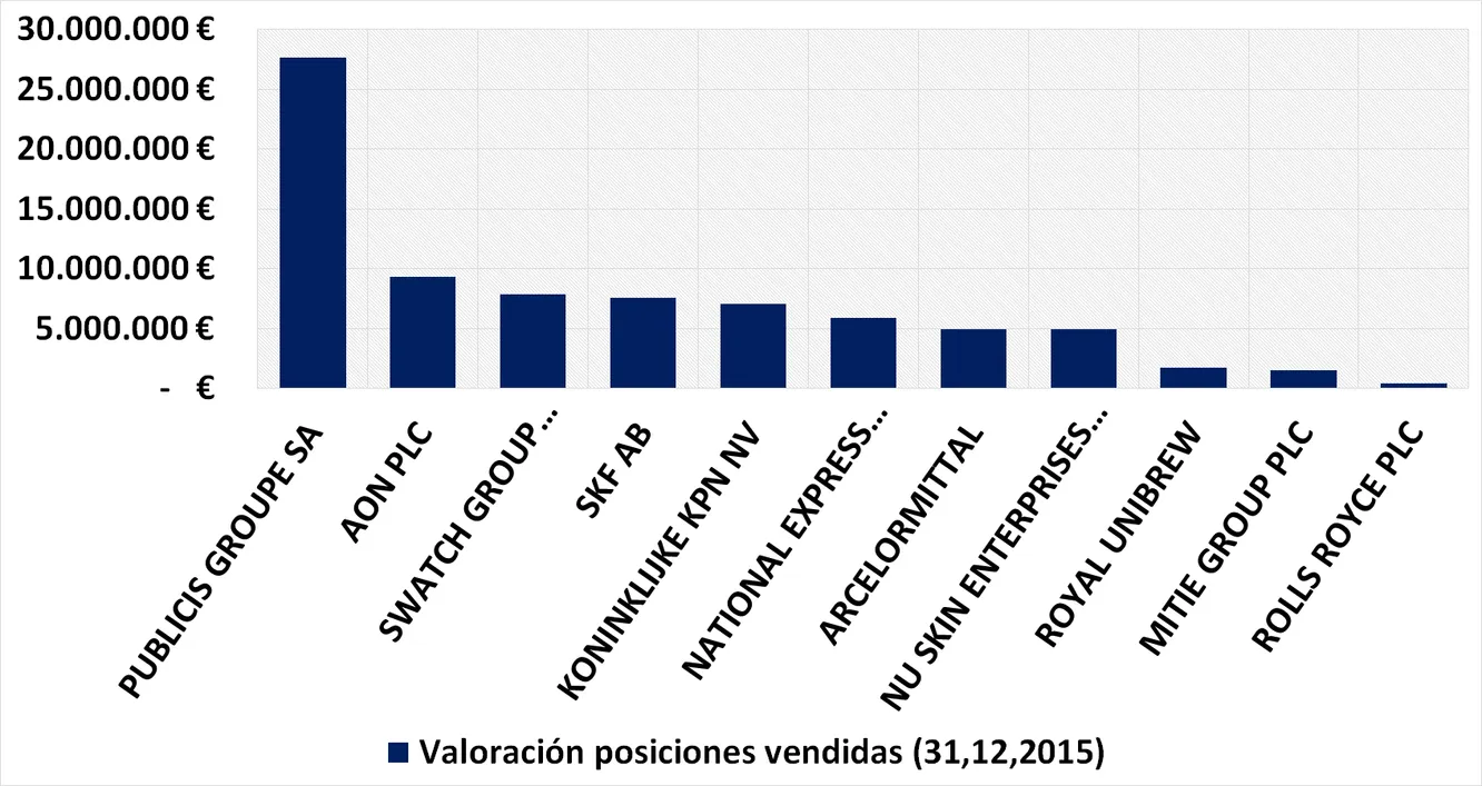 | Nombre | Valoración posiciones vendidas (31,12,2015) |