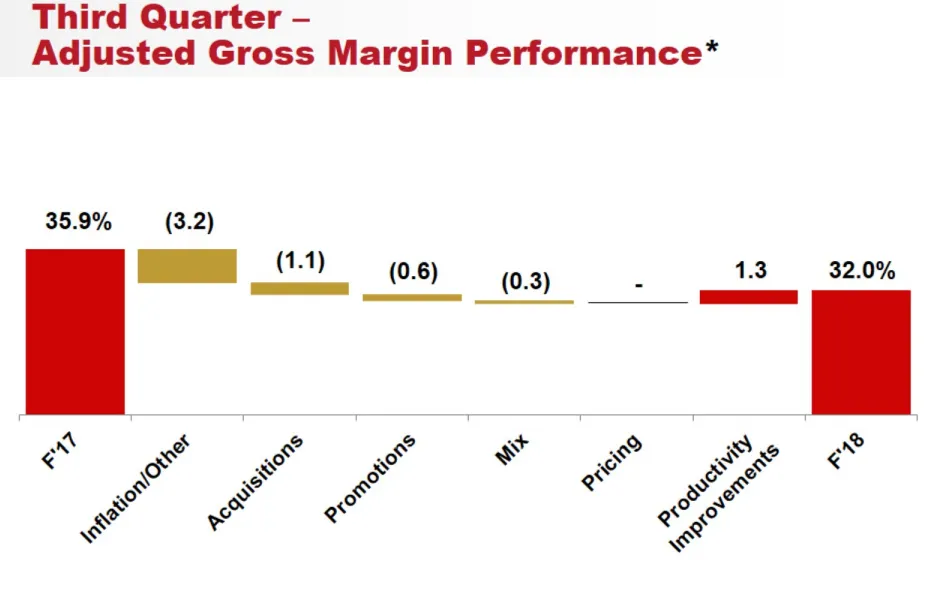 - La deuda neta ha subido hasta $9.6 billion desde $3.1 billion hace un año. Refleja el impacto de la compra de Snyder's-Lances y Pacific Foods por $6.1 billion y 700 millones respectivamente.