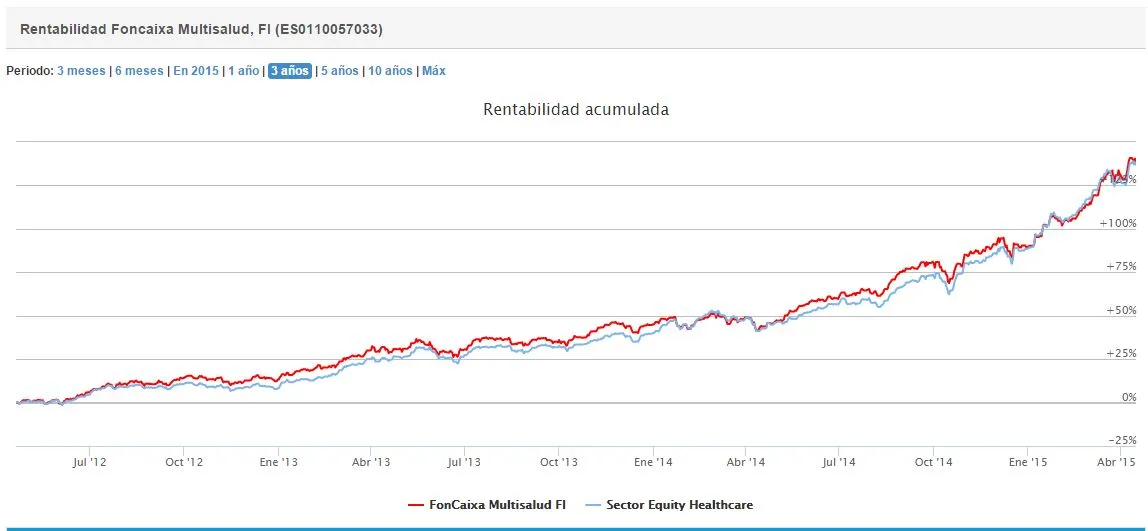 Los fondos de renta variable del sector salud han sido los que mejor se han comportado en el último año. Entre el buen comportamiento del sector, y la apreciación del dólar el sector sube un 64% en 52 semanas. En España hay pocos fondos sectoriales con este objetivo de inversión. El más notable de ellos es, tanto por volumen de activos, como número de partícipes el Foncaixa Multisalud.