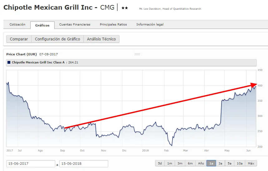 @carlos.alosete escribió sobre Chipotle como un valor a tener en cuenta. A día de hoy vuela casi un 50% del precio al cual cotizaba por las fechas en las que escribió el post.