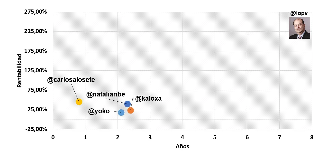 Sí ampliamos el horizonte temporal podemos encontrar a LOPV. Que en términos de rentabilidad anda ya por Neptuno Saturno y Plutón. Parafraseando a Victor Hugo (gran comentarista del mundial 86)... LOPV...el inversor cósmico a qué planeta te fuiste!