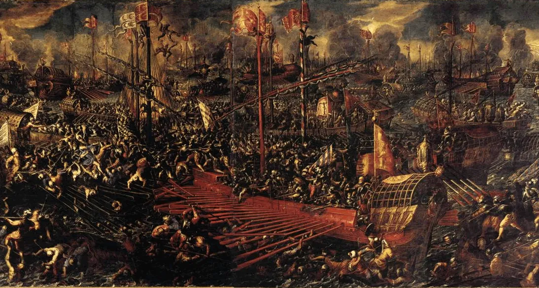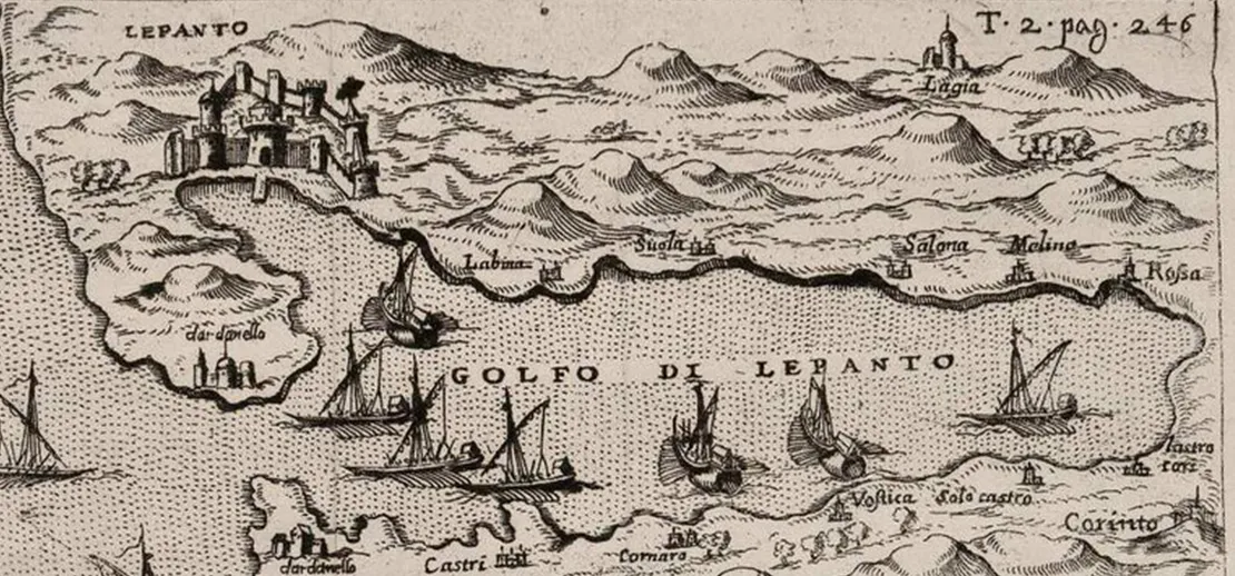 En 1571 se libró la batalla de Lepanto. Más de seiscientas naves se batieron en el golfo de Corinto enfrentando a dos armadas en una batalla igualada en fuerzas y sin igual en magnitud. La flota cristiana contó con trescientas naves y cien mil hombres. El Imperio Otomano acudió con 297 barcos y ciento veinte mil hombres. La mañana del siete de Octubre un vigía de “La Real”, nave capitana de la Santa Liga, avistó una vela turca. Poco después también el resto de la armada turca.