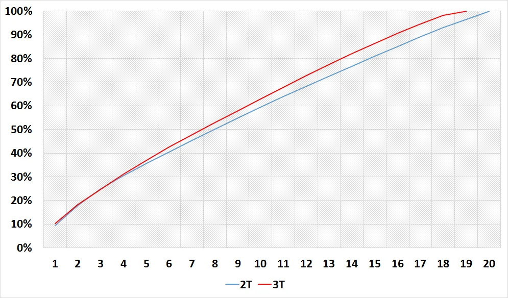 La cartera pasa de 20 a 19 valores diferentes. Esta reducción de valores hacce que la cartera esté más concentrada a lo largo de toda la curva de activos.