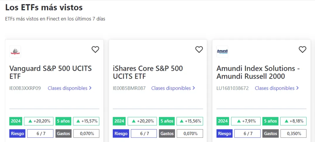 De hecho, los dos más vistos de los últimos 7 días son el Vanguard S&P 500 y el iShares Core S&P 500, dos "sospechosos habituales" en este tipo de rankings.