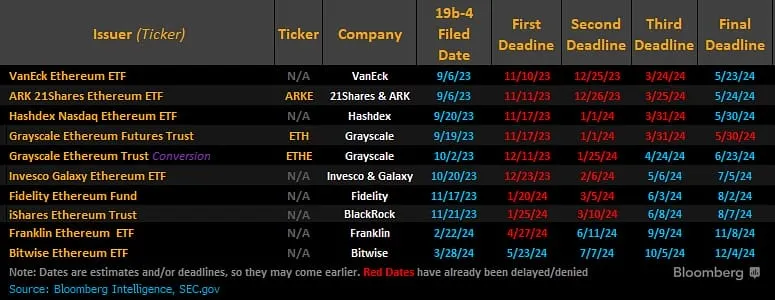 Calendario de decisiones de la SEC con los ETF de Ethereum