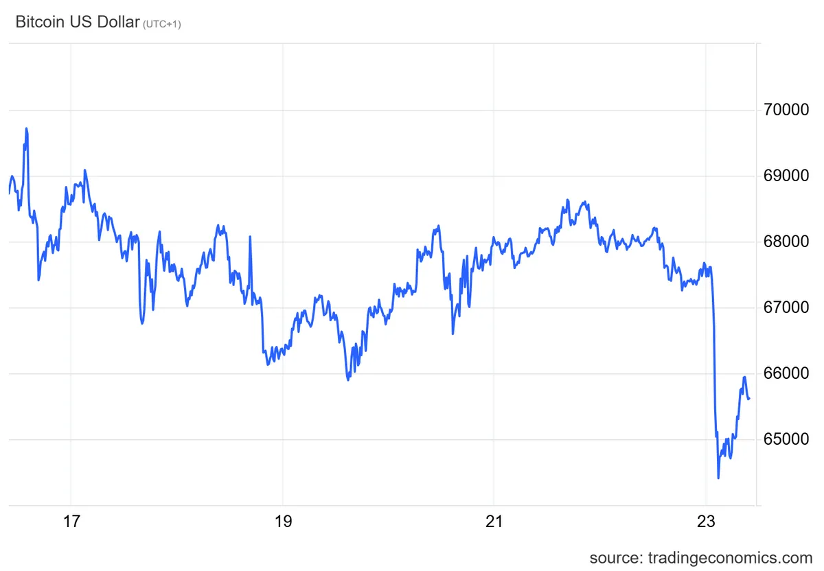 Bitcoin cae de nuevo hasta los 65.000 dólares por la incertidumbre arancelaria en Estados Unidos