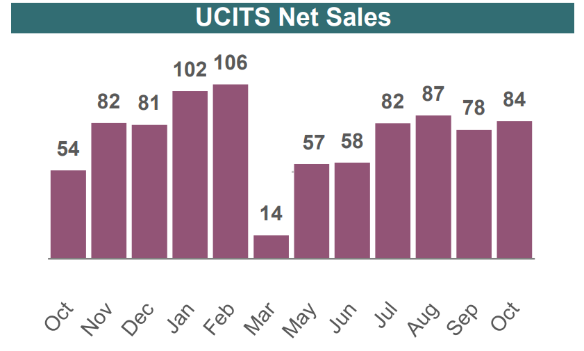 Las entradas netas de UCITS superan los 700.000 millones hasta octubre y EFAMA apunta a un posible récord anual si se mantiene el ritmo