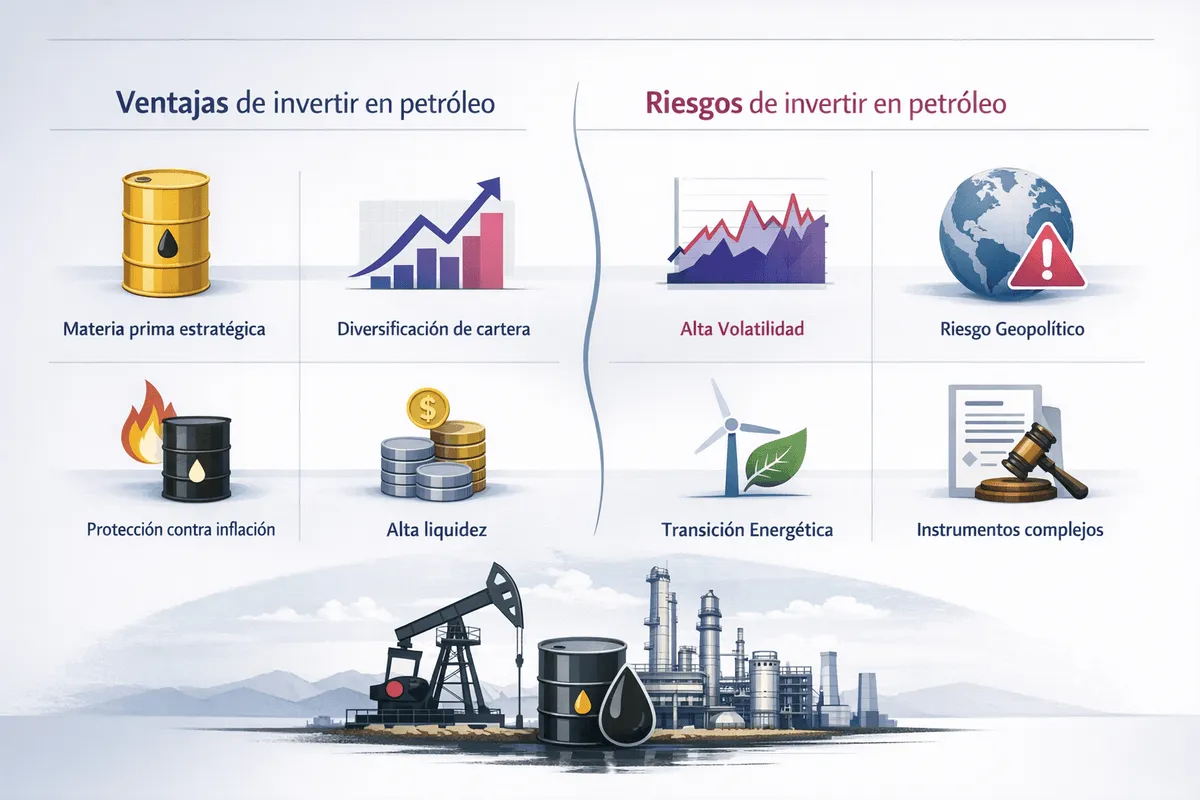 - Complejidad de algunos instrumentos: algunos productos financieros utilizados para invertir en petróleo, como los futuros, pueden ser complejos y no siempre adecuados para inversores principiantes.
