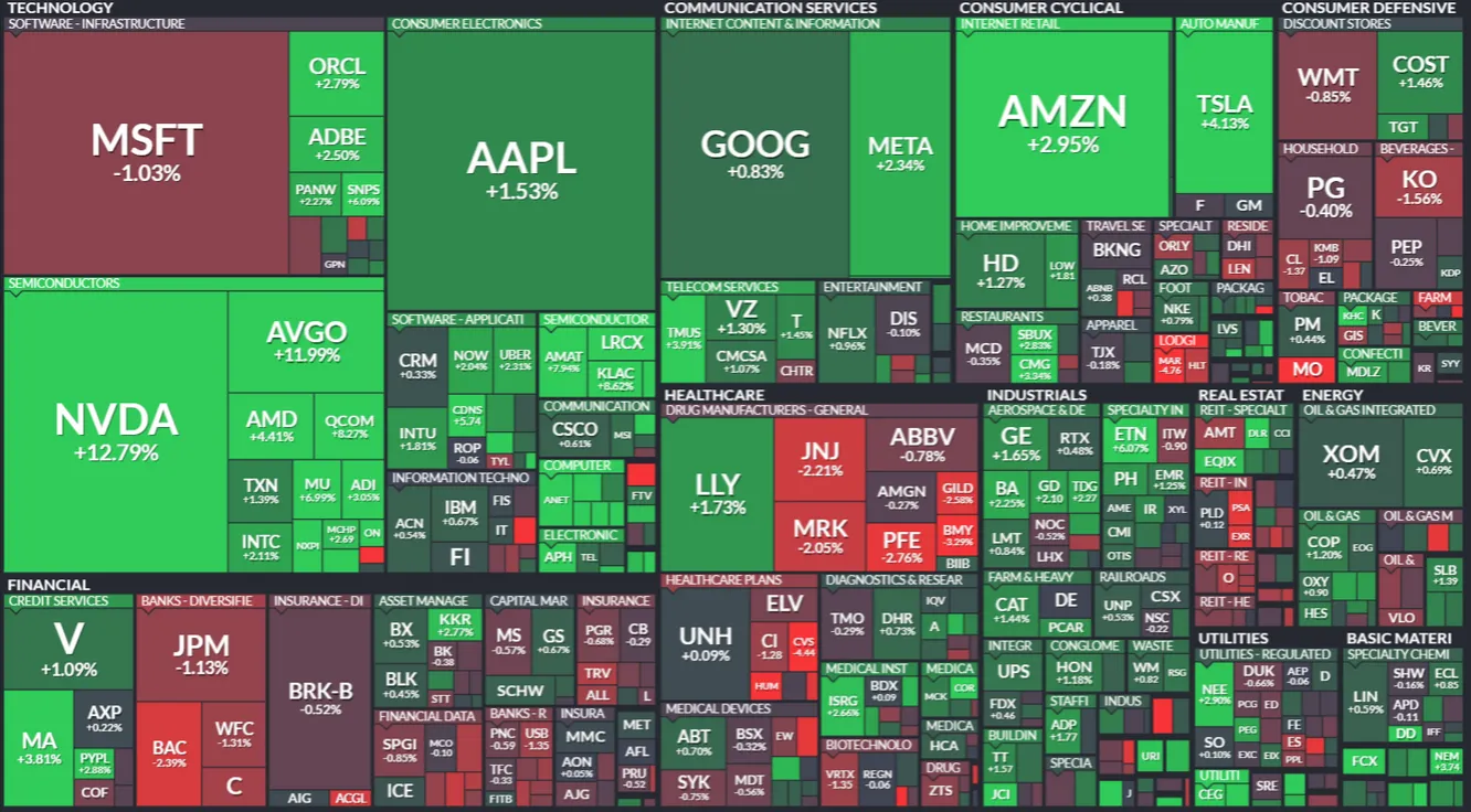 Nvidia recibió un impulso tras las declaraciones de Microsoft en su presentación de resultados, que anunció su intención de aumentar aún más sus inversiones en tecnología de inteligencia artificial para satisfacer la creciente demanda. Esto favorece fuertemente a Nvidia, ya que Microsoft representa el 20% de la demanda de sus chips para IA. Esta fuerte subida de Nvidia hace que gane en tan solo una sesión 329.000 millones de dólares, la mayor subida de valor de una sola empresa en la historia de la bolsa en un solo día.