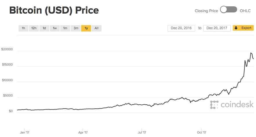 Creo que no hace falta que diga por qué bitcóin podría ser elegida como palabra del año, ¿no? Aquí va un gráfico para los que vivan en Marte: