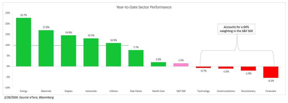 La evolución del mercado estadounidense en 2026 está marcada por una mayor dispersión sectorial, pero también por una ampliación en el crecimiento de beneficios empresariales. Así lo destaca Bret Kenwell, analista de Mercados de eToro en Estados Unidos, al analizar el comportamiento reciente de Wall Street.