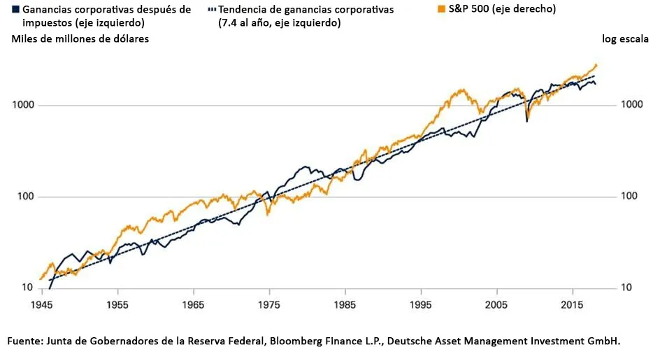 La estrecha relación entre el precio de las acciones y las ganancias corporativas
