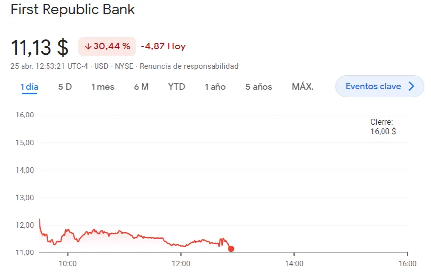 First Republic Bank cae casi un 50% en bolsa tras la presentación de resultados trimestrales y la salida masiva de depósitos de sus clientes. La entidad, una de las más afectadas por la reciente crisis, ha informado este lunes que sus depósitos han disminuido más de un 40% en el primer trimestre de este año.