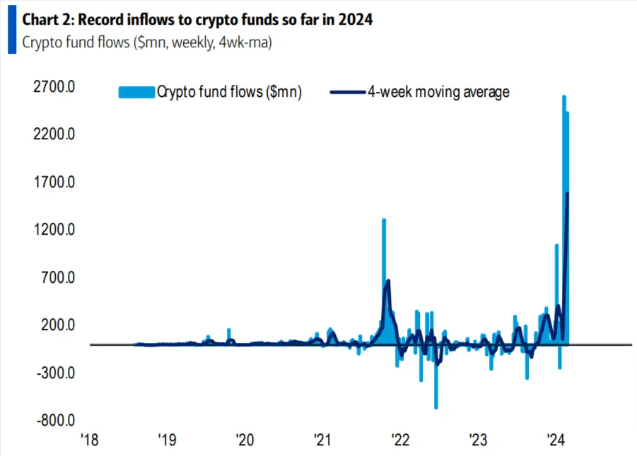 Locura con los fondos de criptos: las entradas en 2024 ya superan a las de la burbuja de 2021