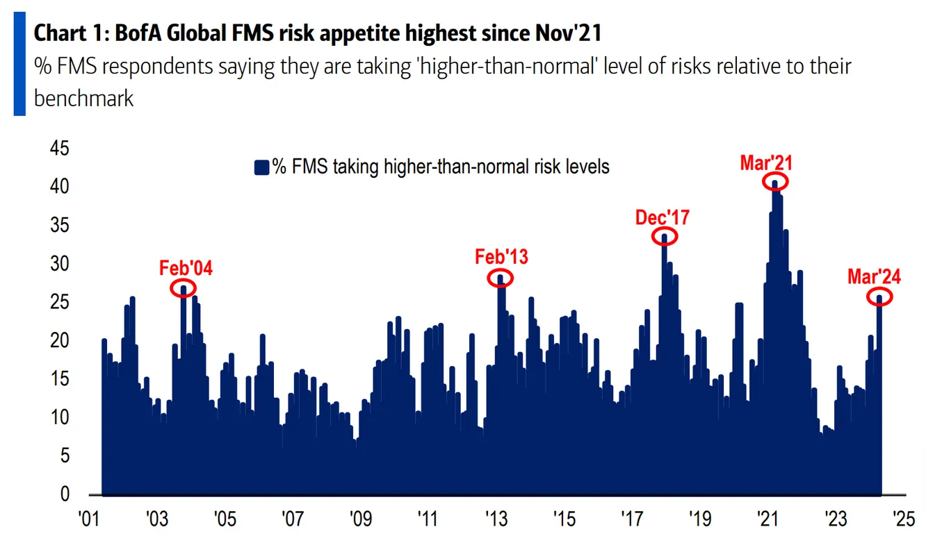 Además, el "apetito por el riesgo" entre los gestores encuestados ha alcanzado su punto máximo desde noviembre de 2021: