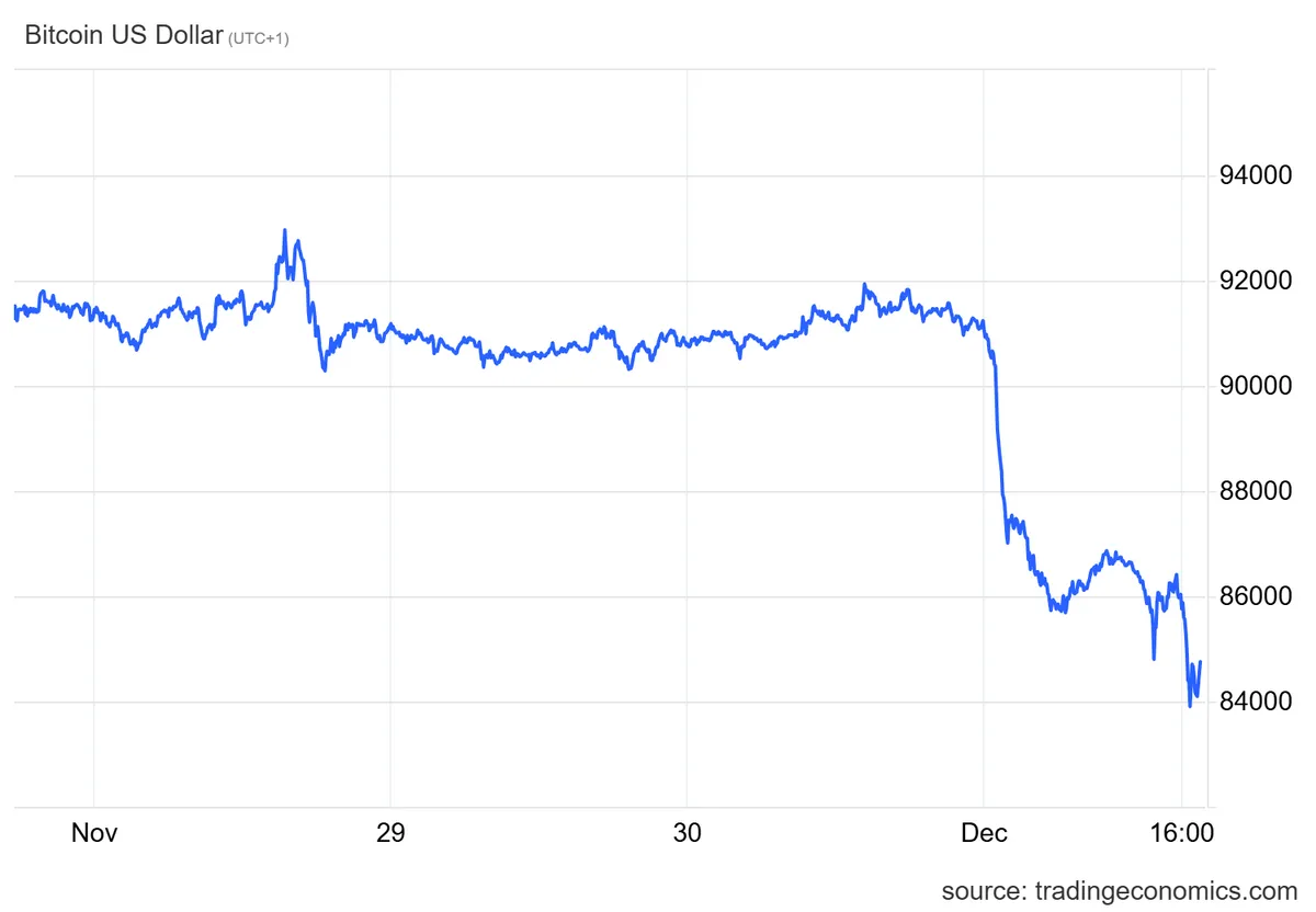 La fotografía del mercado habla por sí sola. Bitcoin, que venía recuperando terreno en la última semana de noviembre, se desploma más de un 6% cayendo por debajo de los 85.000 dólares. A su estela, Ether cede más de un 8% hasta quedarse cerca de los 2.730 dólares. Cardano sufre una de las correcciones más fuertes de la sesión entre las cripto más populares, con un retroceso superior al 10%. Solana cede un 6,9%, y Ripple (XRP) cae un 7,5%, en línea con el tono generalizado de aversión al riesgo.