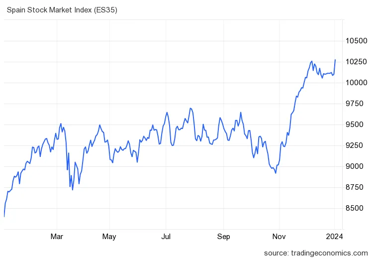 Lejos de las dudas sobre si la bolsa podría aguantar el primer envite del año, los índices de la bolsa europea están comenzando 2024 con fuertes subidas. El Ibex 35 ha iniciado el año con optimismo, avanzando más del 1,5% nada más comenzar la jornada, recuperando el nivel de los 10.200 puntos, tras cerrar 2023 con una subida del 22,7%.