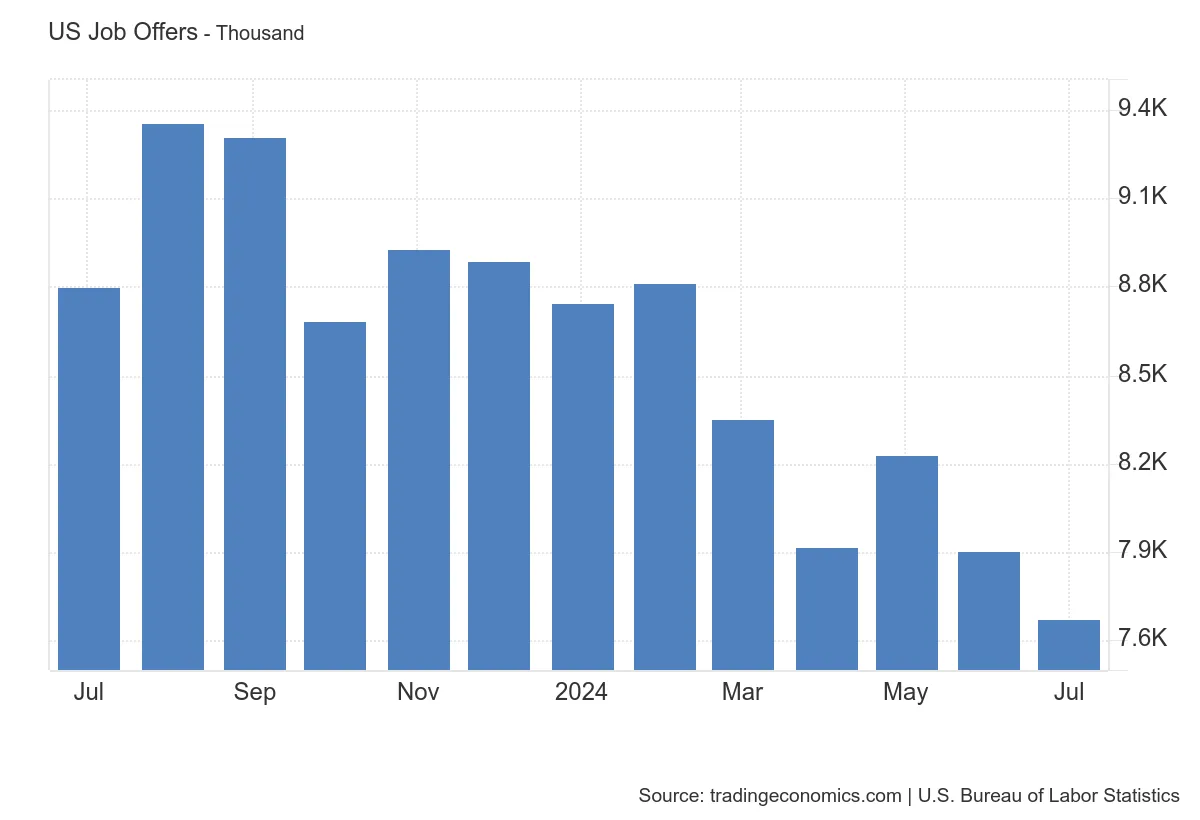 Por otro lado, las contrataciones aumentaron en 273.000 durante julio, alcanzando un total de 5,521 millones, aunque esto representó 212.000 contrataciones menos en comparación con el mismo mes del año anterior.