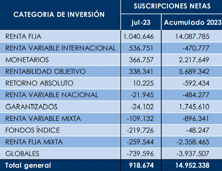 Esto marca 33 meses consecutivos de suscripciones netas positivas en fondos de inversión, aunque es cierto que este tercer trimestre de 2023 es el peor dato en suscripciones en 3 años. Hasta julio, los fondos han acumulado casi 15.000 millones de euros en flujos positivos, en comparación con los 7.200 millones de euros registrados en la misma fecha en 2022.