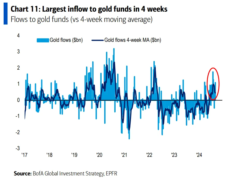 Por otro lado, el oro ha vuelto a captar la atención de los inversores, con entradas de 1.100 millones de dólares, la mayor cantidad en cuatro semanas. Las criptomonedas, aunque en menor medida, también vieron entradas de nuevo, de 200 millones de dólares.